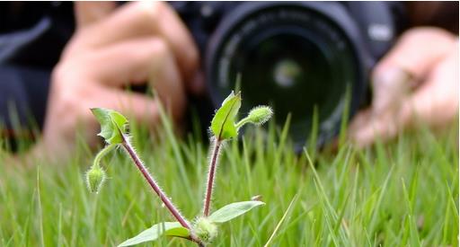 正说话时,一只小鸟落在花上,他迅速按下快门连拍,于是,一帧帧照片就被记录下来。查看一下刚才的照片,其中一张效果不错,他露出了满意的笑容。
